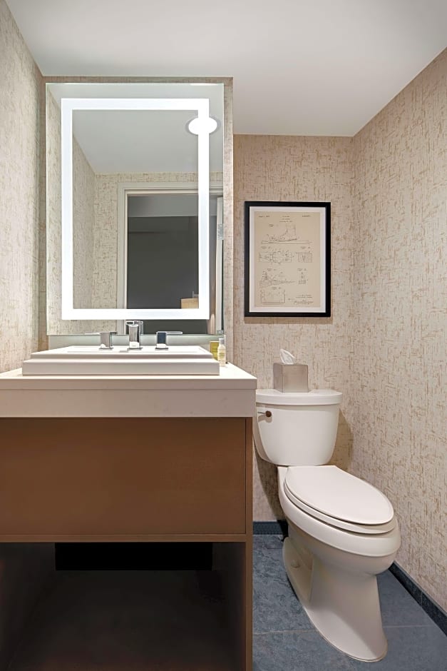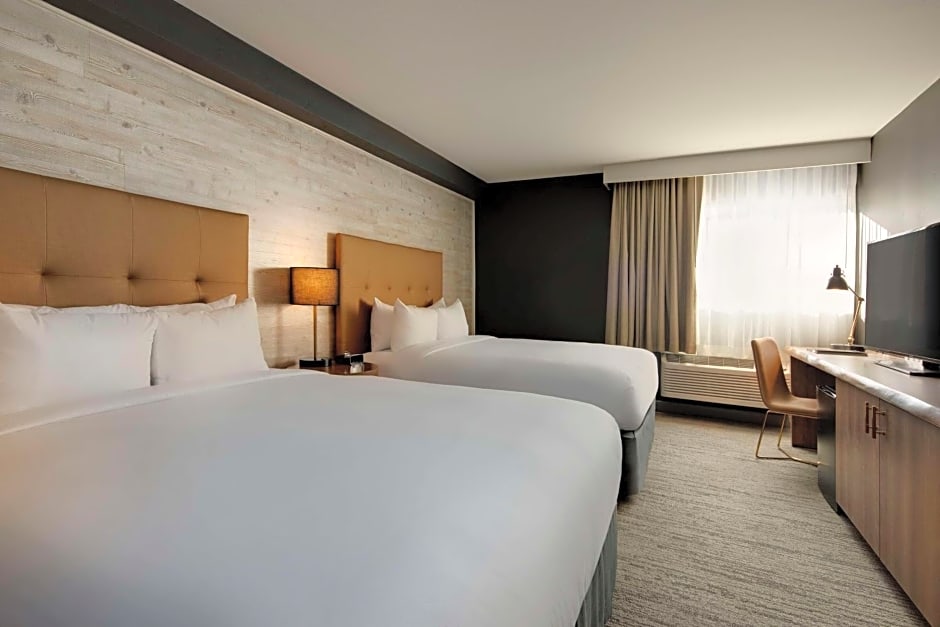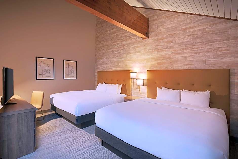 Perfect for friends and family, with this Vail hotel room you'll enjoy two plush queen beds, chaise sleeper, thoughtful amenities and modern mountain lodge design. After experiencing some of Vail's great alpine activities, this comfortable and cozy room will be calling you back to snuggle up and settle in for the evening. All of our Vail hotel guest rooms feature a mountain modern design and include: Wi-Fi, 50-inch HDTV, MP3 alarm clock, hairdryer, iron/ironing board, mini-fridge and coffeemaker. Cool and comfortable, our guest rooms also feature a live edge wood desk, wood accent wall, USB ports, back-lit mirrors and Carrara Quartz bath vanity.